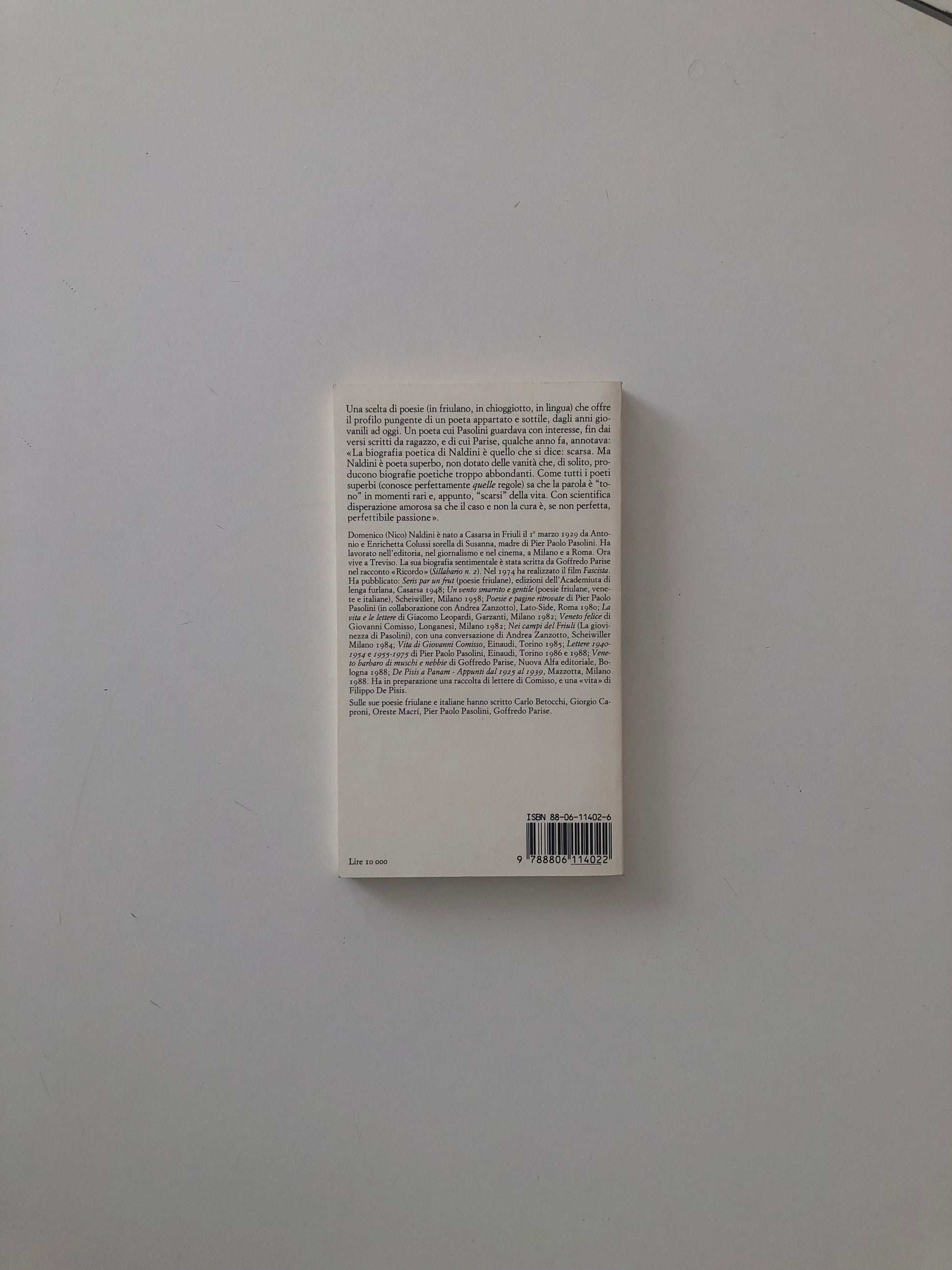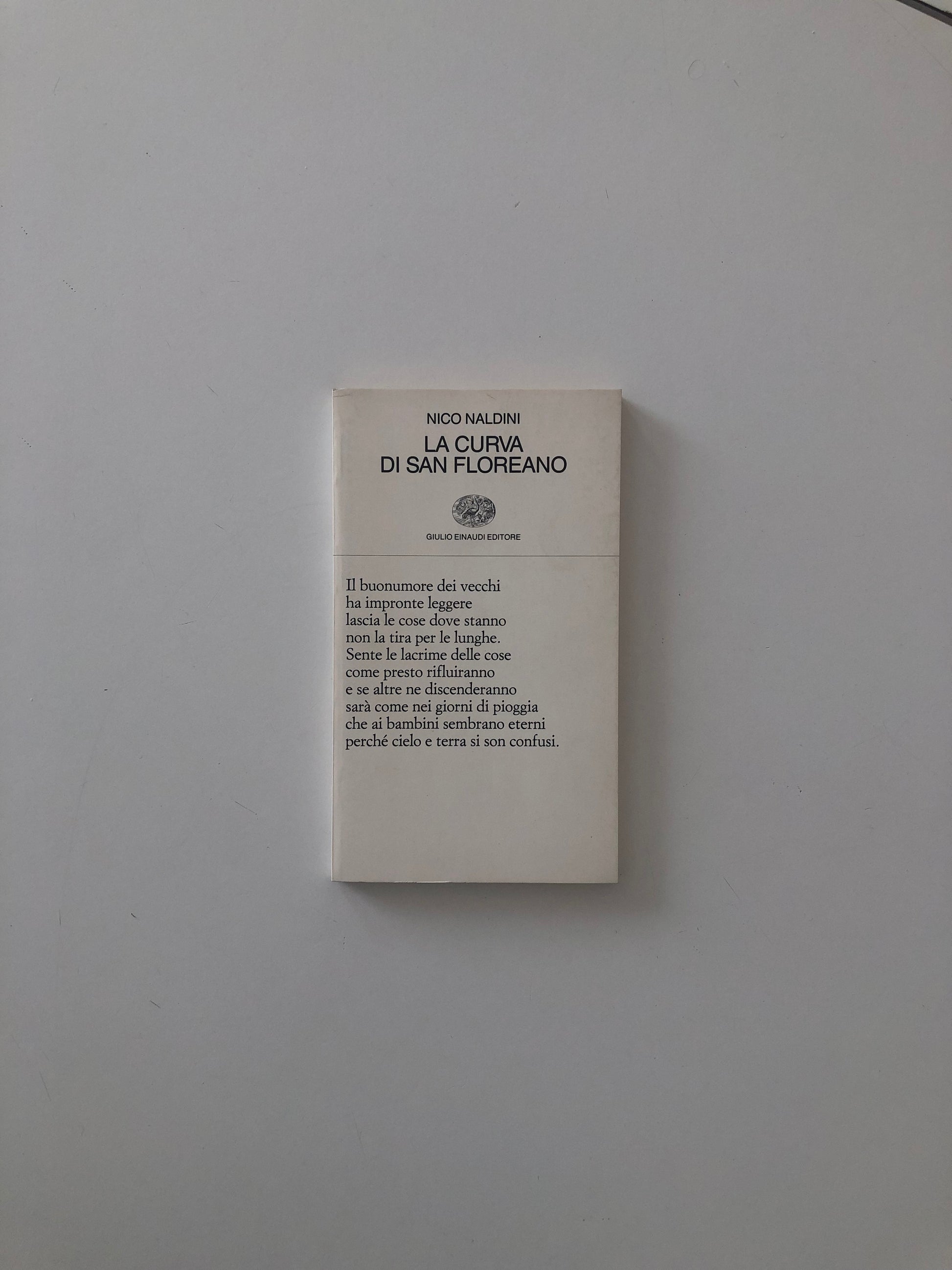 In questa raccolta, Nico Naldini — poeta, scrittore e cugino di Pier Paolo Pasolini — ci regala una poesia fatta di sguardi, di memoria e di una struggente quotidianità. "La curva di San Floreano" è un viaggio nei luoghi dell'anima e della provincia friulana, dove il tempo sembra scorrere con un ritmo diverso. La scrittura di Naldini è cristallina, priva di ornamenti inutili, capace di toccare le corde del sentimento con una naturalezza rara. Un volume indispensabile per chi ama la grande tradizione lirica italiana del secondo Novecento, presentato nella raffinata veste editoriale della bianca Einaudi.